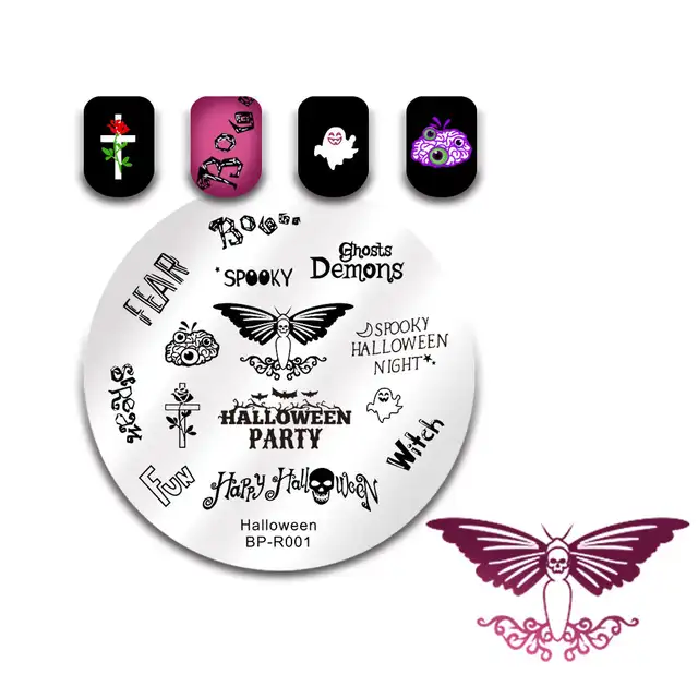 Born Pretty Round Nail Stamping Template Skull Zombie Ghost Moth