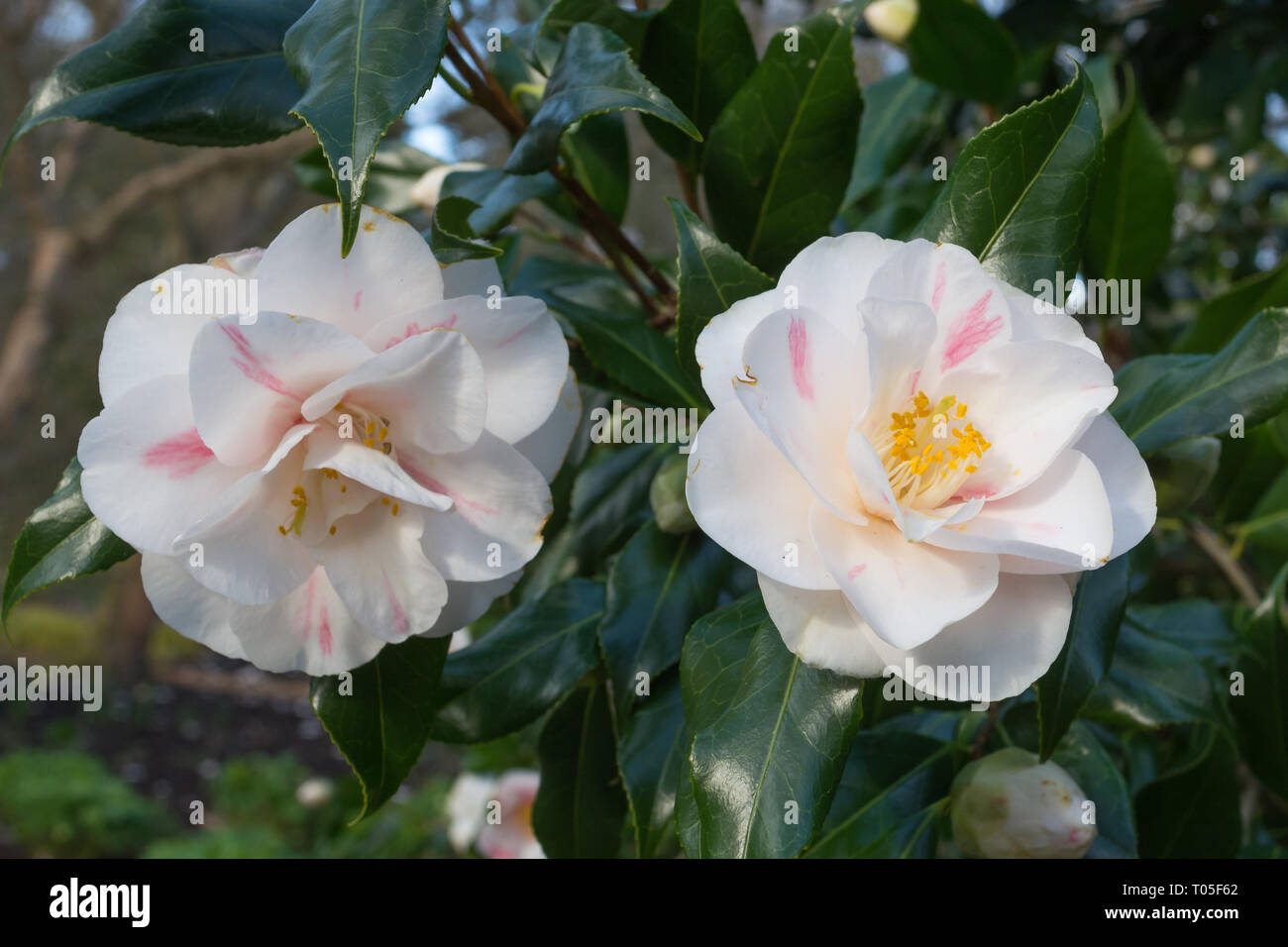 Camellia With Semi Double Pink Flowers Stock Photos Camellia