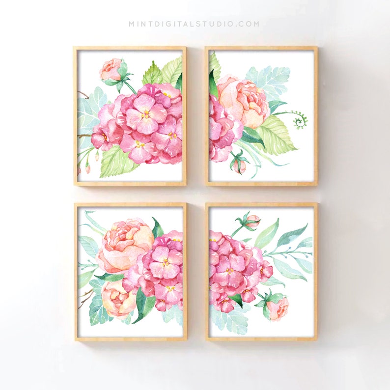 Pink Watercolor Hydrangea Wall Art Rustic Wall Art For Baby Etsy