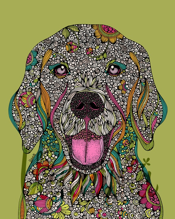 Teddy The Golden Retriever Dog Print Cute Dog Home Decor Etsy