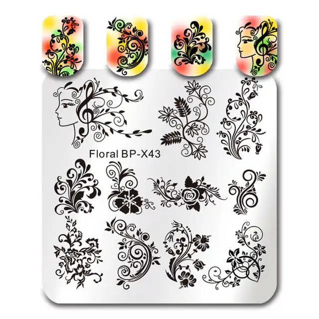 Born Pretty Square Rectangle Round Nail Art Stamp Template Flower