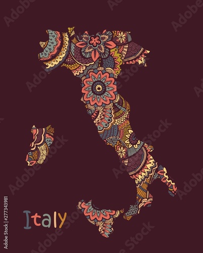 Textured Vector Map Of Italy Illustration In Hand Drawing Doodle